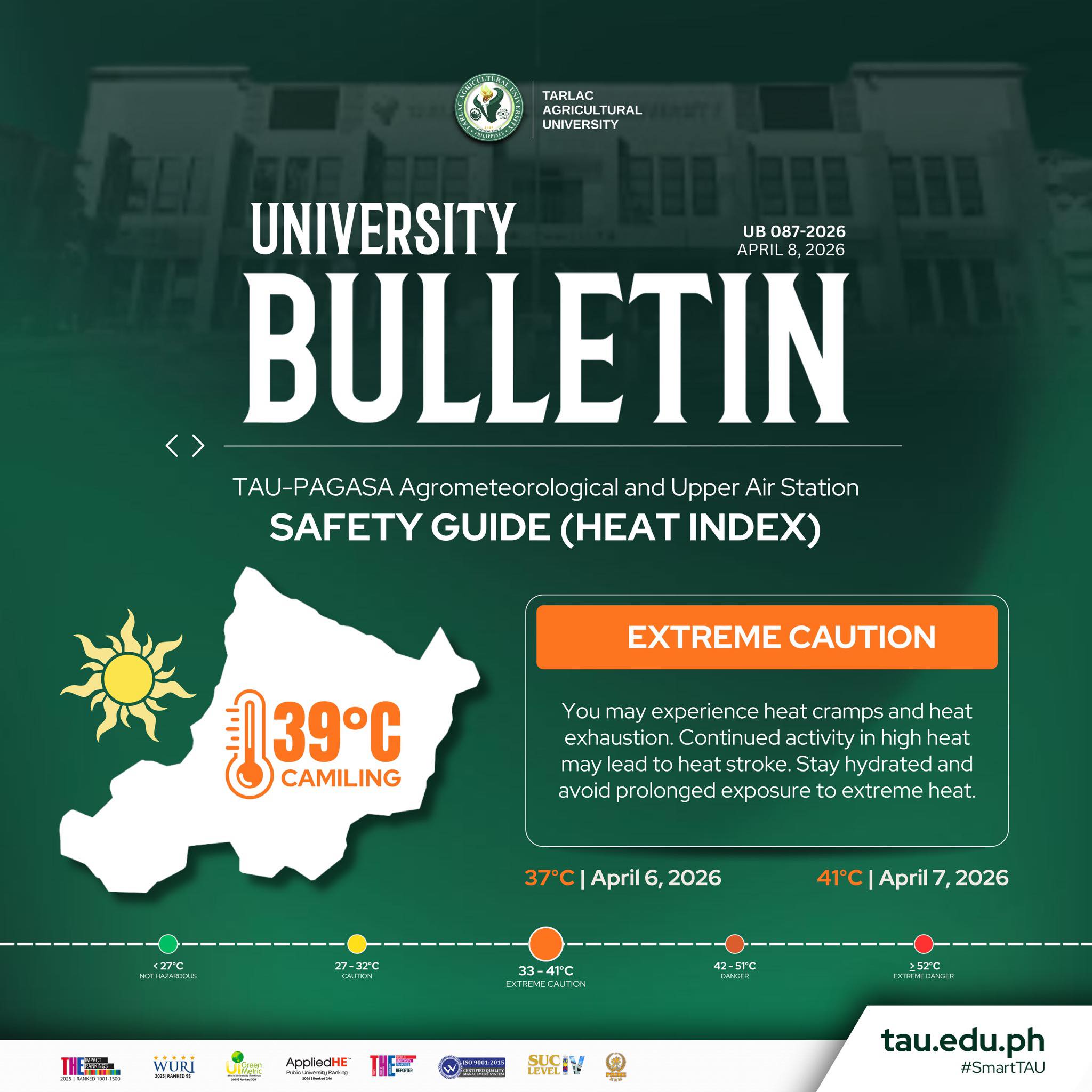 #SmartTAU #GreenandGlobal #PAGASA #Agromet #HeatIndex #SDG3 #SDG11 #SDG13 #SDG17